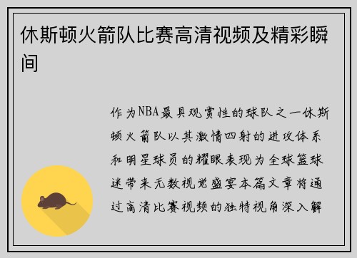 休斯顿火箭队比赛高清视频及精彩瞬间